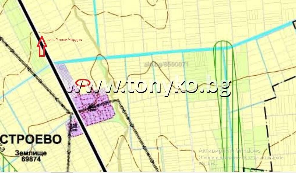 ”Тонико имоти” продава 6525 кв.м. на 100 м от междуселски път Строево - Голям Чардак и на 150 м от Стопанския двор на с. Строево. Имотът има 270 м лице към вътрешен път. Според ОУП (Общия устройствен план) на община ”Марица” парцелът e със статут на земеделска земя, 5-та категория; граничи със зона Смф (смесена многофункционална зона).