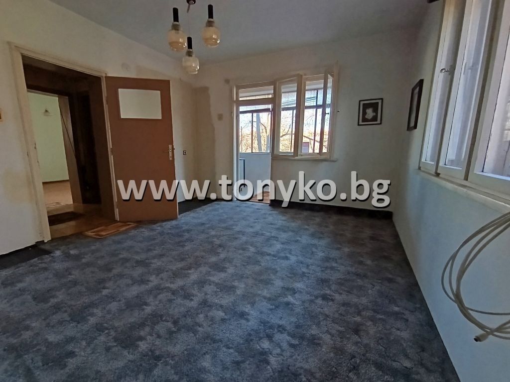 реф. 244395 НОВА ТОП ЦЕНА!!! ТОНИКО имоти предлага за продажба етаж от къща с площ 60 кв.м. в малка кооперация, построена през 1975 г. Жилището се състои от спалня, хол, кухня - обособена на голяма тераса. Етажът се продава заедно с партерна стая с мивка 25 кв.м. и 1/4 идеална част от дворно място 469 кв.м.